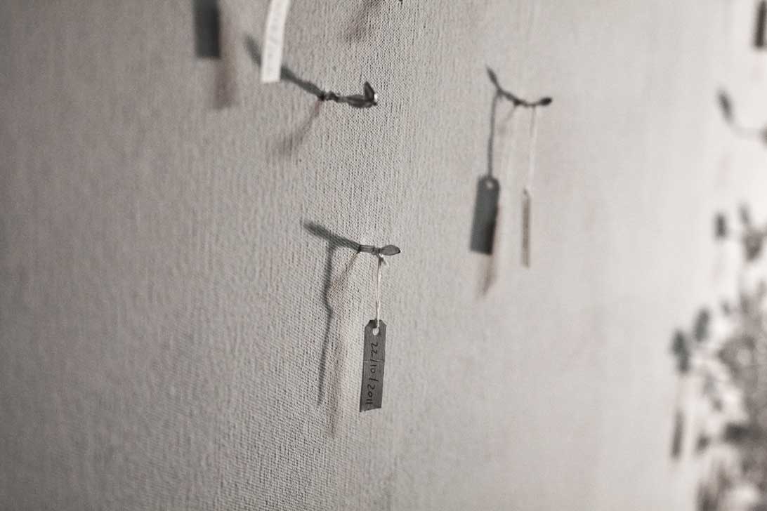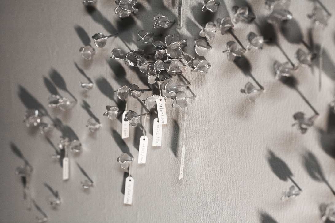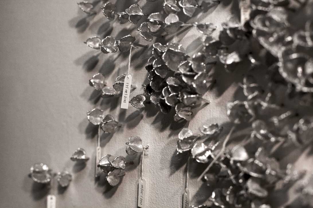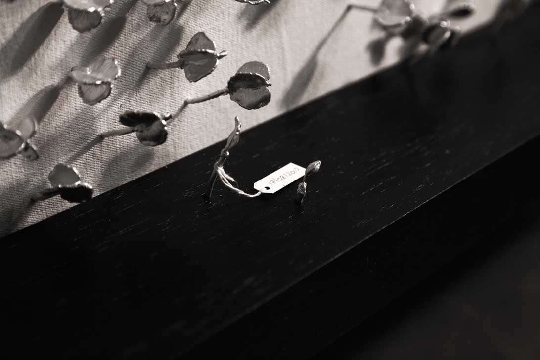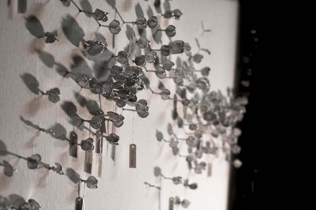 This artwork is a symbolic collection and archive of memories. It memorialises the seamless progression of days, the spread of time, and what is so easily forgotten. One by one, specially selected seedpods are cast in aluminium, each representing the surviving memory of a day. By collaborating with the jeweller Willie Jo Keller, these seedpods become like cherished personal adornments. |