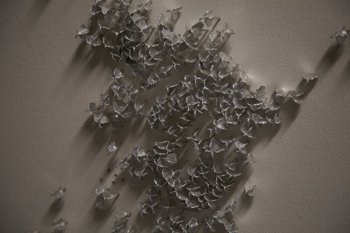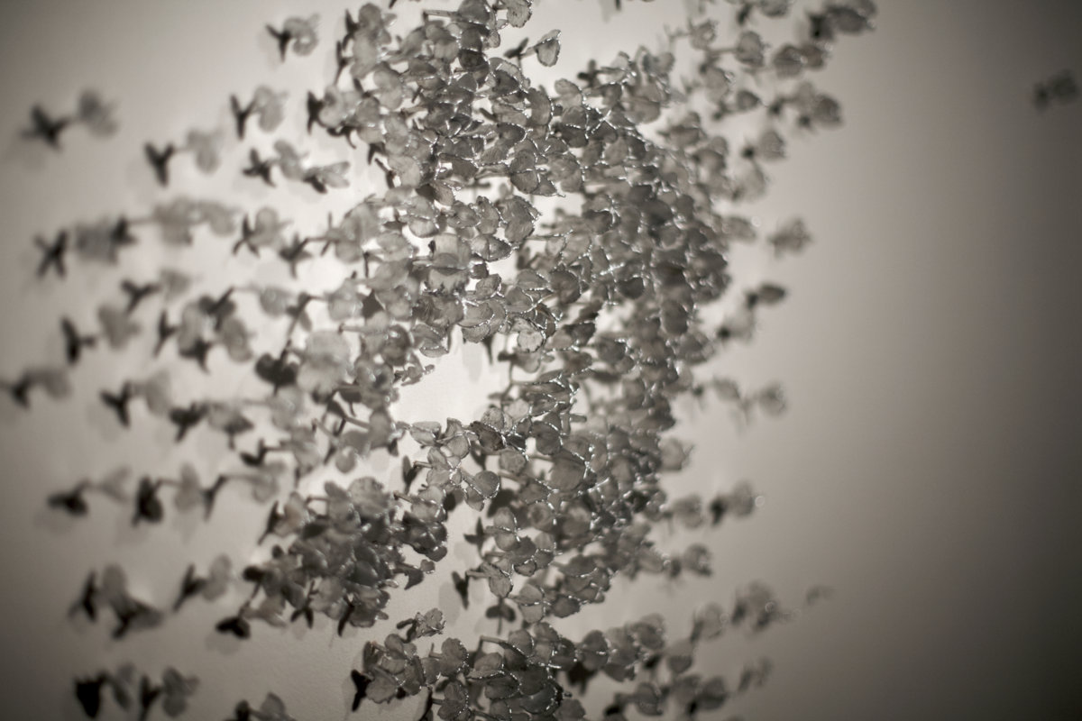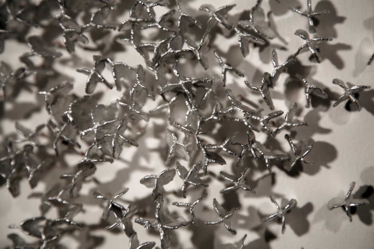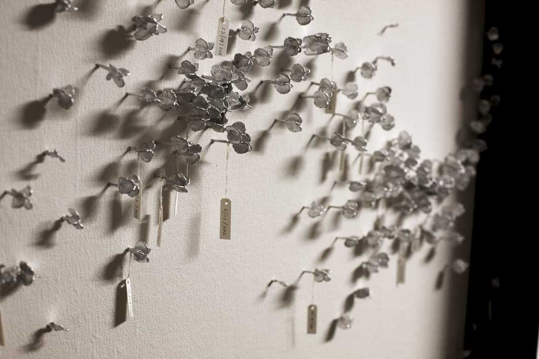 This artwork is a symbolic collection and archive of memories. It memorialises the seamless progression of days, the spread of time, and what is so easily forgotten. One by one, specially selected seedpods are cast in aluminium, each representing the surviving memory of a day. By collaborating with the jeweller Willie Jo Keller, these seedpods become like cherished personal adornments. |